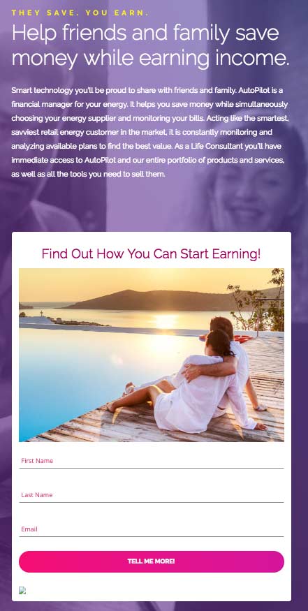 So if you live in a deregulated energy market and you’re tired of paying too much for your energy bills, then AutoPilot is what you’ve been waiting for! AutoPilot removes the confusion of trying to navigate all the different rates. It continually monitors the market, finds you the best value available and switches you, automatically! I know you’ll appreciate the savings!  Like me, you may decide to make money by helping others learn about this and other products we offer as well. Let’s grab a cup of coffee this afternoon and I can tell you more about it.